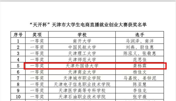俄语口译专业2022级硕士研究生龚栎霖在指导老师李鹏的大力帮助和支持下,经过选拔,直接晋级决赛,并在决赛阶段脱颖而出,荣获“天开杯”天津市大学生电商直播就业创业大赛一等奖。