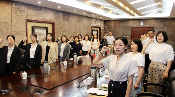新发展的学生党员佩戴党徽,颁发“政治生日”贺卡和成长手册。双方围绕“语言服务在天津市城市国际化进程中的作用以及如何高质量推动外事翻译人才库建设”开展专题座谈。