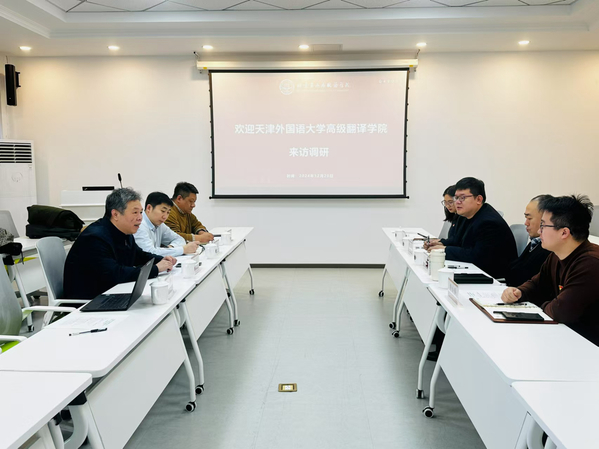 学习交流中,双方从学院发展现状、人工智能与学科建设融合情况,以及学生工作等多个方面进行座谈交流。重点就如何将人工智能技术更好地融入翻译教育领域进行了深入探讨,并分享了教学、学科建设成果以及团学、就业相关等工作经验。